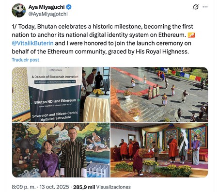 Una ceremonia muy real. Ayya Miyaguchi, presidenta de la Fundación Ethereum, explicado en X mientras viajaba con el cofundador de Ethereum, Vitalik Buterin, para celebrar la ceremonia de lanzamiento de este nuevo documento de identidad nacional en Bután. Acompañaron al evento al primer ministro de Bután, Tshering Tobgay, y al joven príncipe del reino, Jigme Namgyel Wangchuk, de 9 años. Recordemos que Bután es en realidad el Reino de Bután y tiene como forma de gobierno una monarquía constitucional.