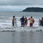 En Manuel Antonio Beach, en Queepos, dos mujeres extranjeras fueron ayudadas por trabajadores de rescate después de ser arrastradas por el mar.