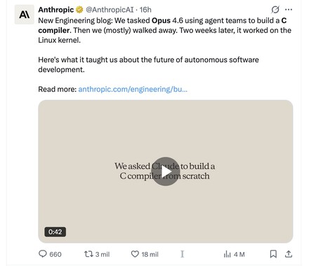 Qué pasó. Nicholas Carlini, investigador de Anthropic, conté ayer como «He estado experimentando con una nueva forma de monitorear modelos de lenguaje que llamamos «equipos de agentes». Ha conseguido que múltiples agentes de programación trabajen en paralelo con el recién lanzado Claude Opus 4.6, y gracias a ello ha desarrollado algo extraordinario con 16 de estos agentes: un compilador de código C.