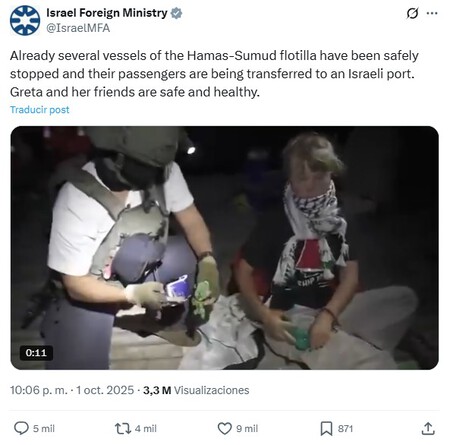 No hubo sorpresas. A pesar de Advertencias de varios gobiernos (incluyendo español) Los barcos del Flotilla Global Sumud (GSF) se desarrollan aún más hacia la costa de Gaza, donde se conocieron en las últimas horas El freno Las fuerzas israelíes. Tanto Tel Aviv como GSF compartieron imágenes del enfoque en el que Se puede ver Por ejemplo, a Greta Thunberg entre los soldados después de que su barco haya llegado al lugar «Zona de alto riesgo».