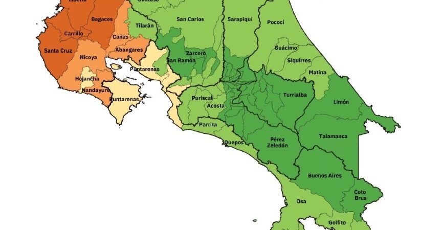 Según el PEN, se espera que el porcentaje de cantones muy húmedos aumente del 83% entre 2020 y 2030 al 48% después del período 2079-2099.