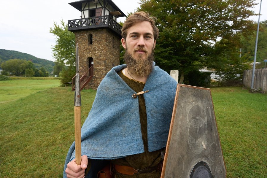 Garvey, que vive en la región de Hesse, recorrió toda la distancia desde Rheinbrohl, en Renania-Palatinado, con material de guerra germánico reconstruido, incluidas prendas de piel y cuero, un escudo y una lanza. Por las noches el aventurero dormía a la intemperie, a veces bajo una lona.