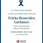 Los distintos candidatos presidenciales y fracciones legislativas lamentaron el fallecimiento de Éricka Benavides, asesora del diputado y candidato Eli Feinzag.