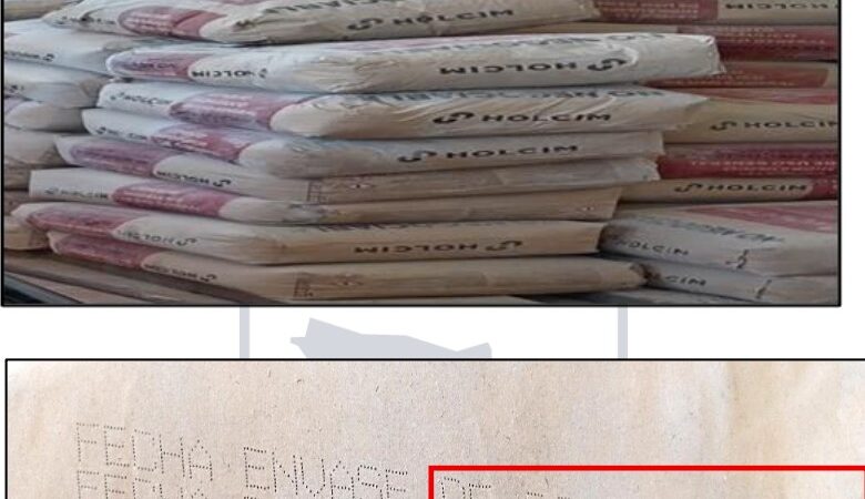 Según el informe, la fecha de empaque en los sacos de cemento fue indicada como el 5 de junio de 2025 y La fecha de caducidad recomendada que marca el fabricante es el 3 de septiembre.