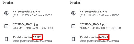 Cabe señalar que de forma predeterminada, la trasera dispara en 12 MP. En la parte superior de la interfaz aparece la opción de cambiar a 50 MP. Eso sí, a nuestro juicio no merece la pena de forma general.