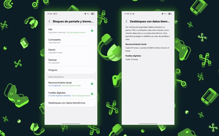 Como de costumbre, tenemos dos formas de desbloquear el Galaxy S25 FE mediante biometría. La primera es el ya clásico (y diría imprescindible) sensor de huellas óptico bajo la pantalla. Un sensor que actúa bastante rápido y que solamente se siente un poco lento por «culpa» de la animación de acceso. Pero vaya, nada relevante o que realmente nos haga sentirlo lento.