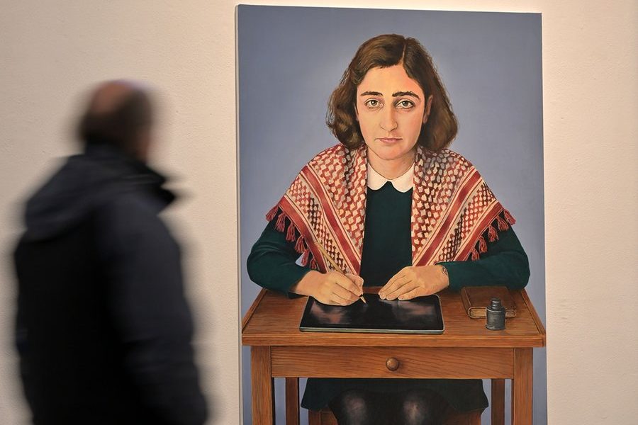 Potsdam (Alemania), 17 de diciembre (dpa) – La imagen de Ana Frank envuelta en un pañuelo palestino en el Museo.