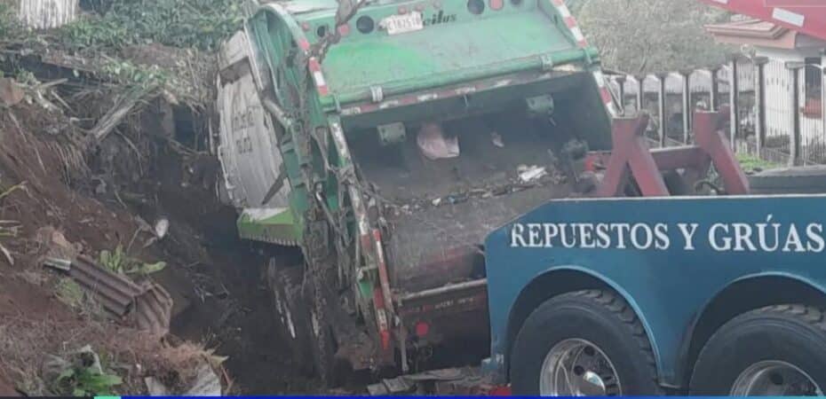 Un camión de basura tuvo un espectacular accidente la madrugada de este martes en Santa Bárbara de Heredia. El incidente.