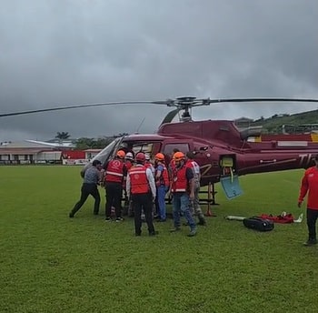 El candidato presidencial y diputado del Partido Liberal Progresista (PLP), Eli Feinzaig, es trasladado en helicóptero a un centro médico.